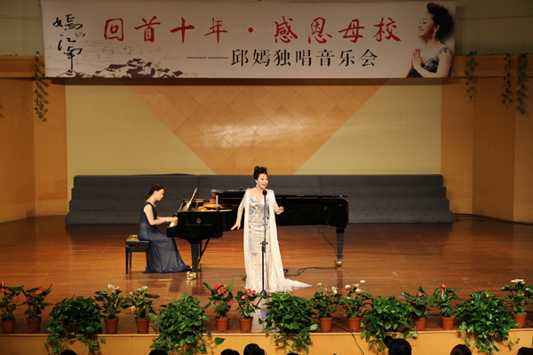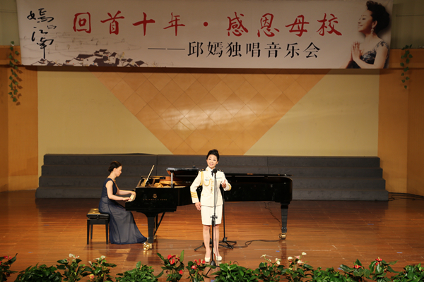 音乐会开场曲《西江月·夜行黄沙道中》首先吸引了观众的听觉与视觉,歌声轻扬婉转,富有韵味;《高山流水》似清泉涌上心头,扣人心弦;《大河涨水沙浪沙》音律把握相当准确,唱出浓厚的民族风味;《春江花月夜》丝丝入扣的演唱,让人联想起江南的美丽景象;《运河谣》余音缭绕,道尽乡音;《秦生啊,你还好吗》歌声高亢,似在说一个故事;《海的女儿》歌声清丽,饱含深情。邱嫣的演唱清新自然、嗓音甜美、感情真挚、声情并茂,歌声里饱含着对音乐艺术的执着追求和对母校恩师的深深眷念。为她伴奏的是中国音乐学院资深艺术指导龚荆忆老师,她的伴奏恰到好处地烘托邱嫣的歌声,整个音乐会气氛热烈,每首曲罢,观众奉上热烈掌声。音乐会最后,当邱嫣的恩师赵俊走上舞台,与邱嫣相拥祝贺时,音乐会的气氛达到高潮。