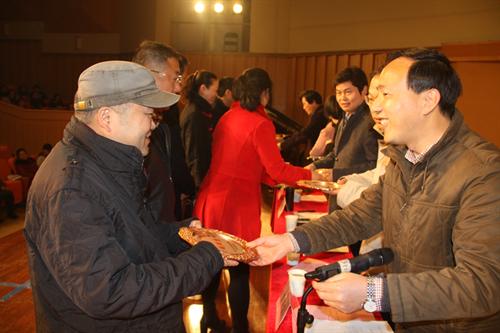 张建国发表讲话。他表示,学院有着令人骄傲的六十年办学史,积淀了丰厚的精神文化,培养了大批优秀文艺人才,在院党委领导下,全院教职员工要在新起点上创造出新业绩。去年我院整体工作平安、有序、亮点纷呈,在人才培养、科研创作、社会服务和文化传承与创新等方面取得了新的业绩和进展。他引用音乐律制术语“五度相生”来部署新年的工作。