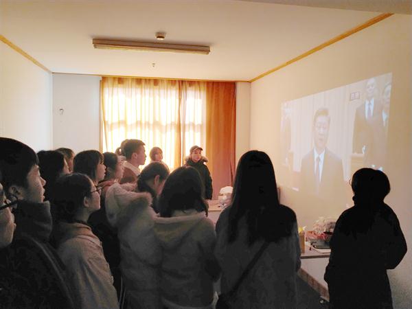 奏响国歌时,美术系党总支在东冠校区601室观看同步直播的老师、学生党员和团学干部,肃然起敬,全体站立,看着屏幕中鲜艳的五星红旗深感自豪。在大会表彰100名改革先锋时,一个个闪光的名字让我们感到可敬又可亲。学生们说,不论是“数字经济的创新者”马云,还是“塑造传承女排精神的郎平,还是“中国天眼”的主要发起者和奠基人南仁东,还是中医药科技创新的优秀代表屠呦呦等等,都让我们心生敬仰,在这辉煌的四十年里,中国人民创造了奇迹,通过一代又一代人的接力奋斗,让改革开放的中国步步走向伟大的复兴。