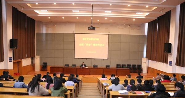 会上,夏开堂就学校学习宣传贯彻“两会”精神提出三点要求:一要迅速传达,各系部党总支要及时召开传达学习会,层层组织学习传达,推动“两会”精神入脑入心,全校上下迅速掀起学习贯彻的热潮。二要深刻领会,要牢牢树立“四个意识”,坚定“四个自信”,切实把思想和行动统一到党和国家的重大决策部署上来,自觉维护以习近平同志为核心的党中央权威;三要紧密结合实际,将传达学习、贯彻落实全国“两会”精神与深入学习贯彻习近平新时代中国特色社会主义思想和十九大精神结合起来;与贯彻落实全国高校思想政治工作会议精神、浙艺“十三五”发展规划和推进省级优质高职校建设结合起来,与推动巡视整改、圆满完成本年度重点工作和即将召开的校第二次党代会结合起来,加强全面从严治党,振奋精神,铆足干劲,抓好各项工作落实。