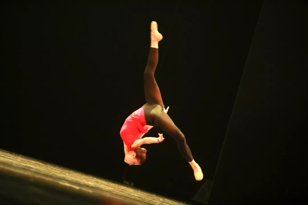 在基本功训练部分,女班柔美的开场舞姿像画一样映在舞台上,随着钢琴伴奏老师覃超的指尖行走在黑白键上,一切视听,都柔柔慢慢荡漾在观众眼前、耳边。演出展示了重心、腰、踢腿、控制、旋转、翻身、跳跃7大项综合训练展示组合,像水波一样的姑娘们,随着钢琴声,用她们自由的身体为观者展示了中国古典舞的柔美。琴声转进刚硬的曲调,到了男班部分。男班的展示组合少了体现女性柔美的腰组合,但在剩下的六个组合内尽显男子风度翩翩、英俊挺拔的气质,一提一沉,一踢一迈,都显着与众不同的动作气场。男生因为肌肉能力,旋转与跳跃部分更加精彩纷呈,观众的阵阵掌声,也让台上每一位演员更加兴奋。