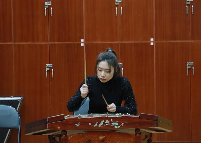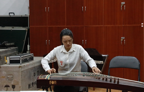 考生的演奏乐器涵盖了竹笛、主胡、二胡、扬琴、琵琶、阮、古筝、戏曲打击乐器等,考生们现场演奏了《秦土情》《枫桥夜泊》《郁轮袍》等曲目。从小学就开始学习古筝的杨同学现场演奏了《箜篌引》,她说:“从小学一年级就开始学习古筝,也很热爱越剧,对于这次考试充满了信心。”