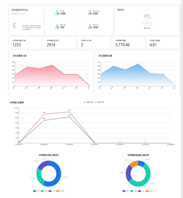 活动自3月下旬开展以来,已有2千多名同学完成了认证。半个月多内,共有1253名同学开始了乐跑打卡,跑步总次数达2914次,总里程数达5779.46公里,人均4.61公里。