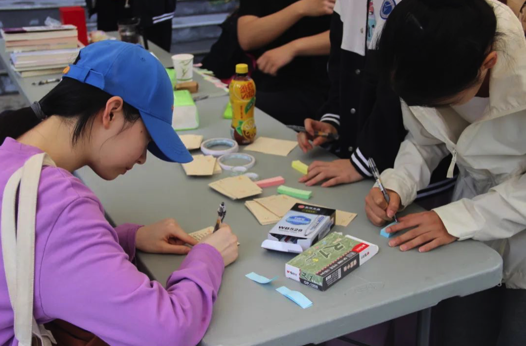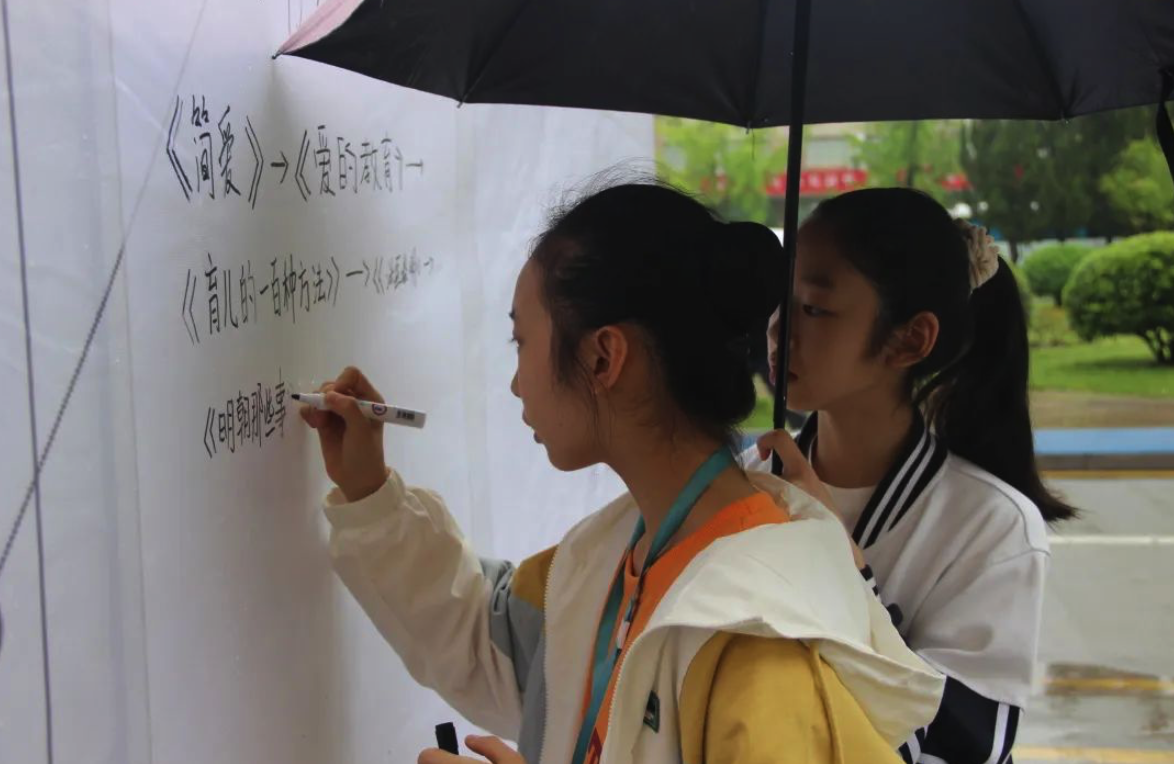 通过“书籍的朋友圈”活动,同学们写下自己所看过的最喜爱的三本书,并附上最有意义的一段话,像朋友圈一样的形式贴于分享板上。《百年孤独》《云边有个小卖部》《活着》《看见》 等像老朋友一样对大家娓娓道来,教会我们如何看待这个世界。“羁绊之名”,写下书中令你印象深刻的人物形象及原因,一个个鲜活的人物跃然纸上,嬉笑怒骂间他的过往在警醒着我们的人生。随后许愿墙上一个个朴实而真诚的想法写在五彩斑斓的便利贴上,承载了少年时期最美好单纯的愿望。