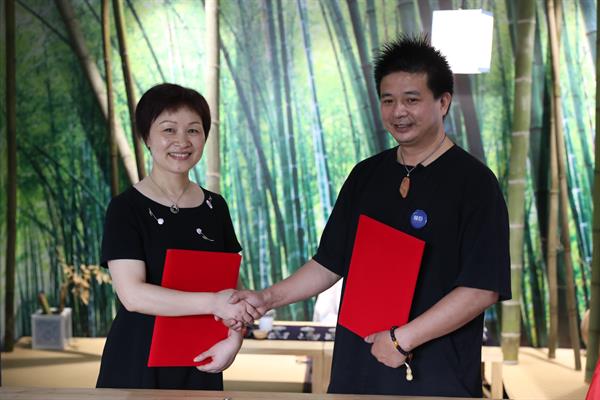 手工艺学院党总支书记、副院长金银琴与叶其丹签署产教融合协同育人协议并进行产教融合实践教学基地授牌仪式,共同开启培养传统工艺新人新篇章。