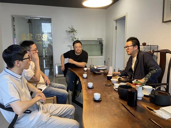 参观会上,手工艺学院副教授叶峰泉、文创专业教研室主任李旭晨等同悦木品牌创始人陈民区、悦木新媒体运营负责人崔斐斐进行了细致交流,就当前就业形势、用人单位要求、文创产业前景等交换了意见,对于今后合作方向和合作内容形成初步共识。